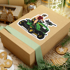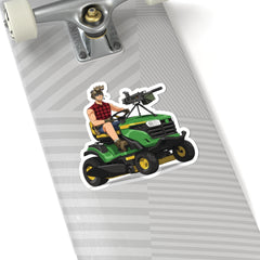 Mow the lawn and defend the homestead – all before lunch. This sticker features the ultimate suburban war rig: a tactical lawn mower equipped with a mounted machine gun, driven by a flannel-clad operator ready for grass or battle. Perfect for those who believe freedom starts at home… and in the yard.